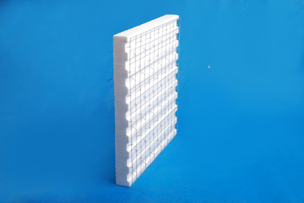 輕型鋼絲網架聚苯板也稱鋼絲網架保溫板以模塑聚苯乙烯泡沫塑料(EPS)板為芯材,兩側外覆高強度鋼絲網片,網片用鍍鋅鋼絲斜插穿過聚苯板,點焊連接而成的三維空間組合板材。簡稱3D板。